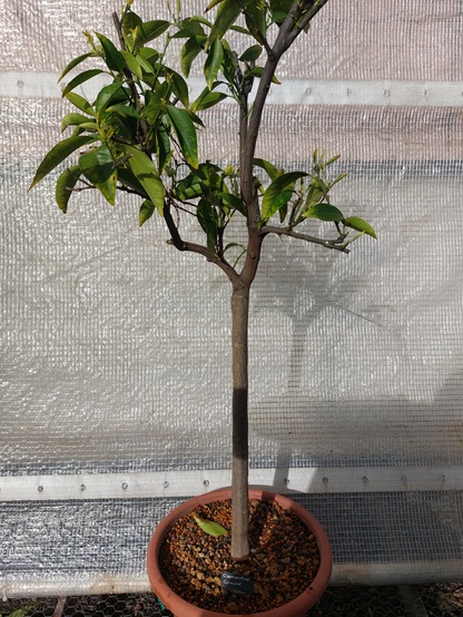 Die Klementine Comune ist in Italien die am meisten verbreitete Sorte. Der Baum ist dicht belaubt und reich tragend. Das Laub ist typisch mandarinähnlich mit spitz zulaufenden Blättern. Die schöne, orange Frucht schmeckt fein und ist auch süss. Das weiche Fruchtfleisch enthält einige Kerne. Ich vermute, das war eine gute Anschaffung.